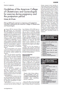 In January 2002 the American College of Obstetricians and Gynecologists (ACOG) published new recommendations and guidelines for exercise during