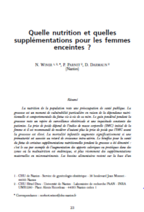 La nutrition de la population reste une préoccupation de santé publique. La grossesse est un moment de vulnérabilité particulière en raison de la dépendance nutritionnelle et comportementale du fœtus vis-à-vis de sa mère. Le gain pondéral pendant la grossesse reste un repère de surveillance obstétricale et une inquiétude constante des patientes. La prise de poids dépend de l’indice de masse corporelle (IMC) initial de la femme et il est recommandé de modérer d’autant plus la prise de poids que l’IMC avant la grossesse est élevé. La mortalité infantile augmente significativement si une prématurité est associée au retard de croissance intra-utérin.