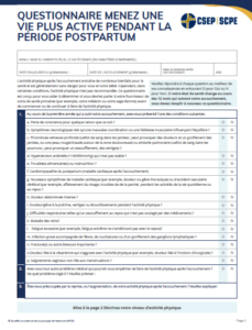 Ce questionnaire est conçu pour vous aider à déterminer si vous devriez parler à votre fournisseur de soins de santé primaires (par exemple, votre médecin ou votre sage-femme) avant de commencer ou de continuer à faire de l’activité physique.
