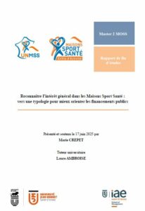 Les Maisons Sport-Santé (MSS) ont été créées pour répondre à un enjeu majeur de santé publique : lutter contre l’inactivité physique et favoriser l’accès équitable à l’activité physique adaptée. Pourtant, malgré leur utilité sociale reconnue, leur modèle économique reste fragile. Afin d’analyser cette situation, une enquête nationale par questionnaire a été menée auprès de 121 MSS (21 % du réseau), en mobilisant une grille de dix critères d’intérêt général construite à partir de la littérature scientifique et institutionnelle.